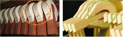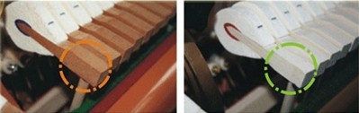 *威士頓鋼琴機芯制音器為木質,普通鋼琴則是塑料質地。