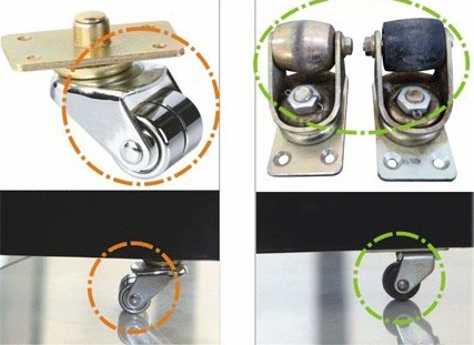 *威士頓鋼琴腳輪采用合金鍍鉻制造,人性化的雙軸承、雙輪子設計,靈活性高,可操作性強、耐磨、不生銹;而普通鋼琴則選用橡膠材質或鐵材單腳輪,容易卡死,不耐磨,且影響美觀。