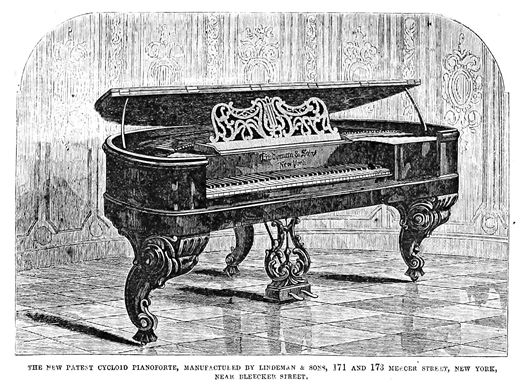 凱笙鋼琴旗下四大品牌中,以林德曼鋼琴最受歡迎。林德曼鋼琴是美國知名鋼琴品牌,有著悠久的歷史。早在1836年WilliamLindeman成立了林德曼鋼琴公司,至今已有一百七十多年。在所有對美國鋼琴業有推動作用的大公司中,林德曼鋼琴對美國鋼琴界具有舉足輕重的地位,1860年,Herman Lindeman獲得Cycloid piano的專利權,宣傳定位是“世界上外形最優雅,樂音最精致,最耐用的鋼琴”。1907年,公司的產值便已經達到了100000萬美金,按照1907年與2013年的GDP比例,換算成人民幣約等于3億人民幣,這一數據對整體處于經濟大蕭條困境下的美國企業而言,是相當可觀的,甚至是值得大寫特寫的。 (林德曼獲得專利的Cycloid piano資料照片)