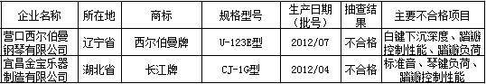 | 質(zhì)檢總局:西爾伯曼、長(zhǎng)江鋼琴抽檢不合格(表) |