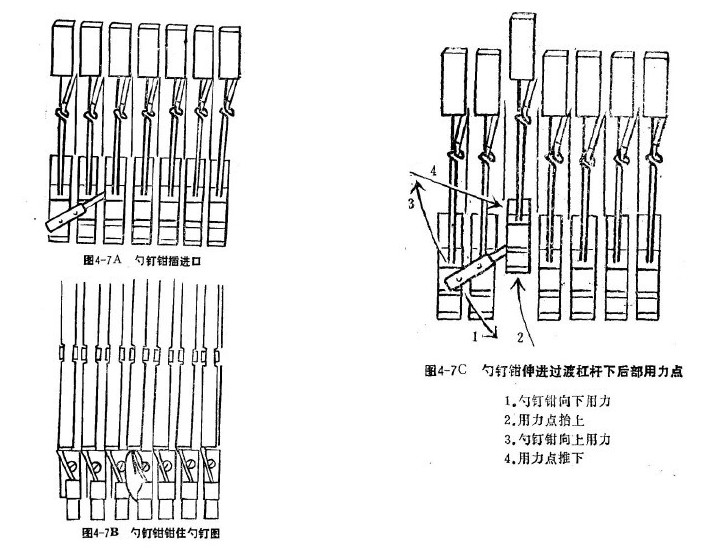 鋼琴勺釘的校驗 校正鋼琴勺釘(調羹)要用專用工具調羹鉗。 首先拿出鍵盤機械,將它反過來,用夾彎鉗把鋼琴勺釘扳貼在鋼琴勺釘呢的中間位置。但必須注意其彎度不宜過大,否則在校驗鋼琴勺釘時,鋼琴勺釘鉗無法鉗住鋼琴勺釘的臂部。若把鋼琴勺釘扳得太直,則在拆裝時,卻很難把螺釘擰進去或退出來。 同時,擰動螺釘也容易牽動過渡枉桿的凸毅銷子(采格申達),使凸毅銷子松動,導致過渡杠桿搖動不平穩。 故必須把鋼琴勺釘校正得恰到好處,這樣,一方面可使螺釘能自如地擰下或裝上,另一方面在校正鋼琴勺釘時,鋼琴勺釘鉗能鉗住鋼琴勺釘的臂部進行調整。 校正鋼琴勺釘必須把鍵盤機械裝進琴內,然后用鋼琴勺釘鉗伸進過渡杠桿下部,直至鉗住杠桿后面的鋼琴勺釘的臂部,此時,即可以進行調整。 1.怎樣鉗住鋼琴勺釘? 當把鋼琴勺釘鉗伸進過渡杠桿下邊的后部時,必須用手抬起過渡杠桿,然后用鉗口夾住鋼琴勺釘的臂部。抬起過渡杠桿是為了突出鋼琴勺釘,易于使鋼琴勺釘鉗鉗口對準鋼琴勺釘的臂部,同時鉗子也可以向上或向下自由地扳動鋼琴勺釘,隨著鋼琴勺釘鉗活動的方向,抬起或按下過渡杠桿。鋼琴勺釘鉗向上扳動時,則須按下過渡杠桿;鋼琴勺釘鉗向下扳動時,則須抬起過渡枉桿. 2.鋼琴勺釘鉗的用法與鋼琴勺釘的校驗 鋼琴勺釘鉗不同于一般的鉗子,其用法有它獨特之處,則要鉗口向上,從過渡杠桿下部的左面或右面的邊上伸進去,至過渡杠桿的后面。這時須使鋼琴勺釘鉗的鉗口傾靠鋼琴勺釘,鉗住鋼琴勺釘的臂部,向上扳動,將使鋼琴勺釘早一點與制音器上的鋼琴勺釘呢接觸,即是制音呢早一點離開弦線,使弦線振動,向下扳動,將使鋼琴勺釘遲一點與制音器上的鋼琴勺釘呢接觸,即是制音呢遲一點離開弦線。 3.校正鋼琴勺釘的要求 要使小槌從起步開始,走到其全行程的三分之一時,制音呢隨著開始起動,離開弦線。這樣就可以使13一個小槌彈下去,鋼琴制音呢能立刻離開弦線,使弦線發出柔和的聲音來。每一只制音呢離開弦線的時間必須校調得一樣,當彈奏者的手指離開鍵子時,所發出的音即立刻被制止住。 |