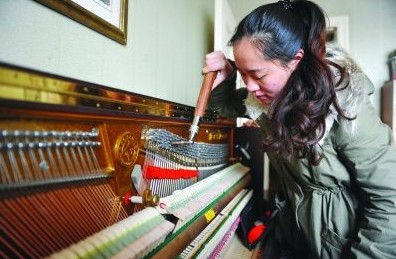 南藝學樂器制造專業的20多名同學發揚專長,走進小區為市民家里的鋼琴調音。昨日上午,他們分三路在南京天津新村,高教公寓和寶地園小區門口掛起了牌子。